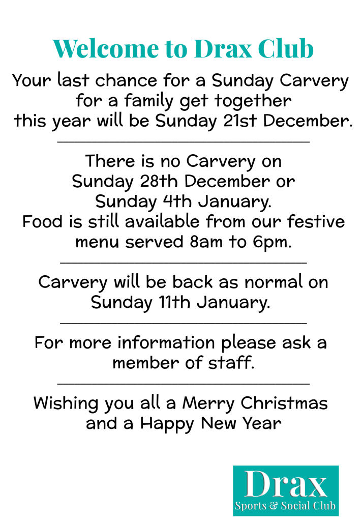 Sunday Lunch. Please phone on 01757 618041 to book a time and table to guarantee no waiting.