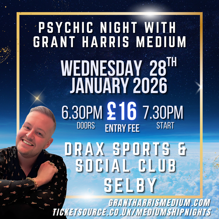 Tickets available at https://grantharrismedium.com/products/Psychic-Night-Drax-Sports-&-Social-Club-Selby-28-01-2026-ALSO-ON-TICKETSOURCE-p741299559